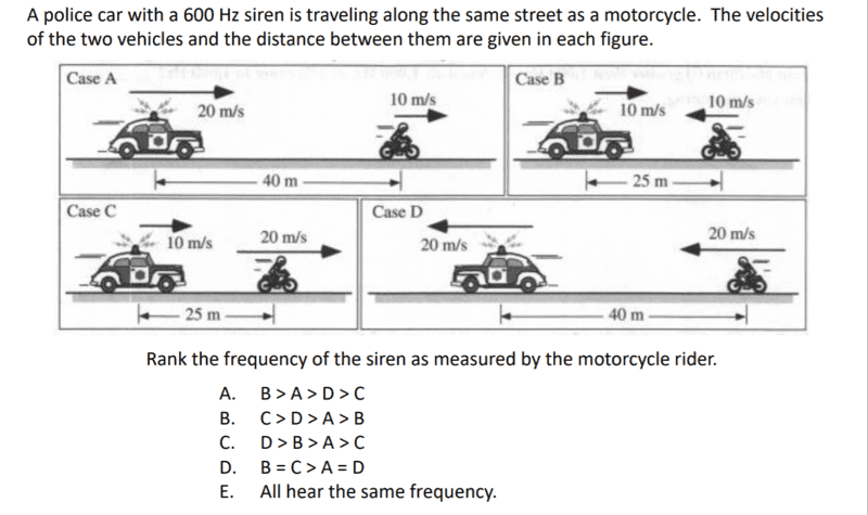The discussion focuses on the Doppler Effect as it pertains to two moving objects, specifically a motorcycle and a siren. The key equation used is the frequency of the observer = frequency of source[(V ± Vo) / (V ± Vs)], which illustrates how the observed frequency is influenced by the velocities of both the source and the observer. It is established that while the siren's frequency remains constant, the frequency perceived by the motorcyclist varies based on their relative velocities. Understanding this relationship is crucial for accurately applying the Doppler Effect in practical scenarios.