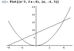 The points of intersection of the two functions is at x=-2 and at x=4. Attached is a plot with the area asked to find.