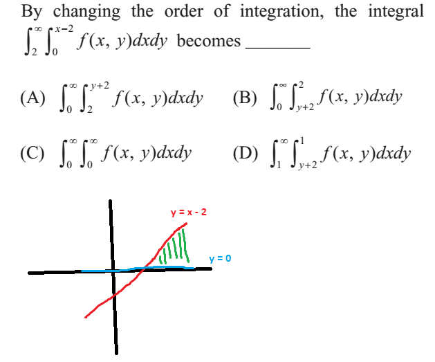 The discussion centers on the process of changing limits in double integration homework, specifically transitioning from the limits of y = 0 to y = x - 2 and x = 2 to infinity, to new limits of x = y + 2 to infinity and y = 0 to infinity. The participant expresses confusion regarding the validity of their new limits, noting that these options are not presented in the homework. Another contributor confirms that the participant's approach appears correct but highlights the unusual nature of the question, particularly regarding the order of integration (dx dy).