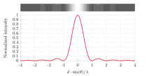 - a textbook interference pattern is generated at the screen centre - this relates to light hitting the screen traveling perfectly normal to the screen, slots, and laser.
