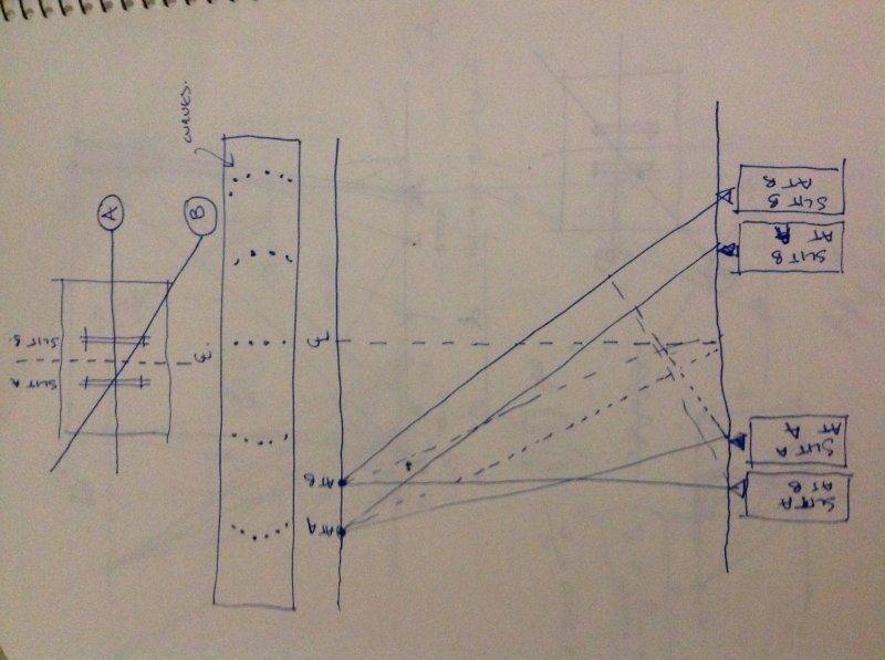 But what happens to say the bottom left and top right slot positions interference with each other? And then every other combination in between? Wouldn't this make the interference pattern have bent ends on every strip rather than being straight lines?
