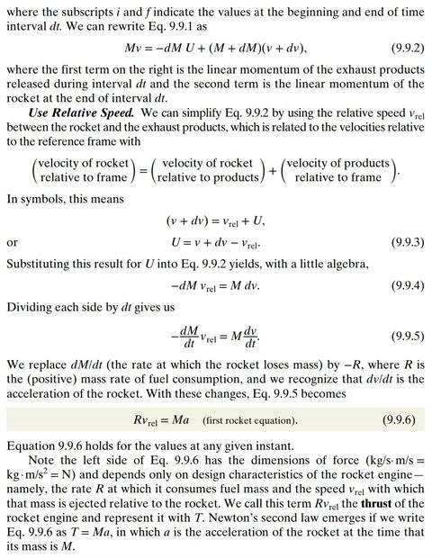 Thus \ F_{est} = M \frac{dv}{dt} + v \frac{dM}{dt} -u \frac{dM}{dt}.