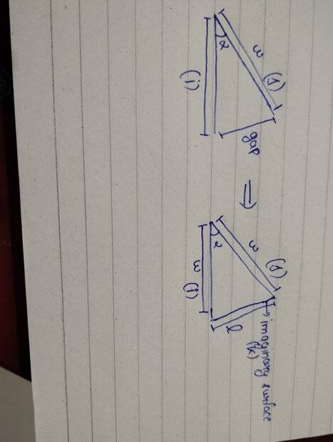- We need to prove that fraction of total radiation from plate i falling on plate j is equal to 1-sin(α/2) where both plates are infinite long, share a common edge , have same width and are inclined at an angle α