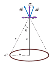 I have the calculation of the electric field created by a ring of radius ##R## uniformly charged with a linear density of charge ##\lambda## at any point on the axis perpendicular to its surface (##z## axis), but I have some doubts about it. I'll leave you the calculation done first: