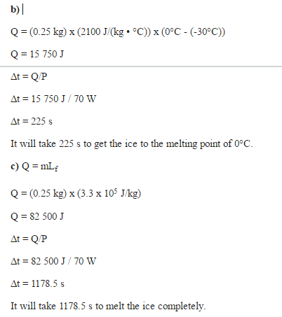 Participants are working under the assumption that a heater is continuously providing 70 W of power, which may influence the timing of phase changes. There is a lack of specific data regarding the duration of each phase transition, which is a point of inquiry in the discussion.