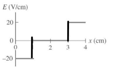 The discussion centers on the proper representation of discontinuous electric fields in graphing. Specifically, it emphasizes that vertical lines should not be drawn at discontinuities, such as at x = 1 cm and x = 3 cm, because this would incorrectly suggest that the electric field possesses all intermediate values. The correct approach is to plot the electric field as discontinuous functions to accurately reflect its behavior at these points. This clarification was provided by user @kuruman, reinforcing the importance of accurate graphing techniques in physics.