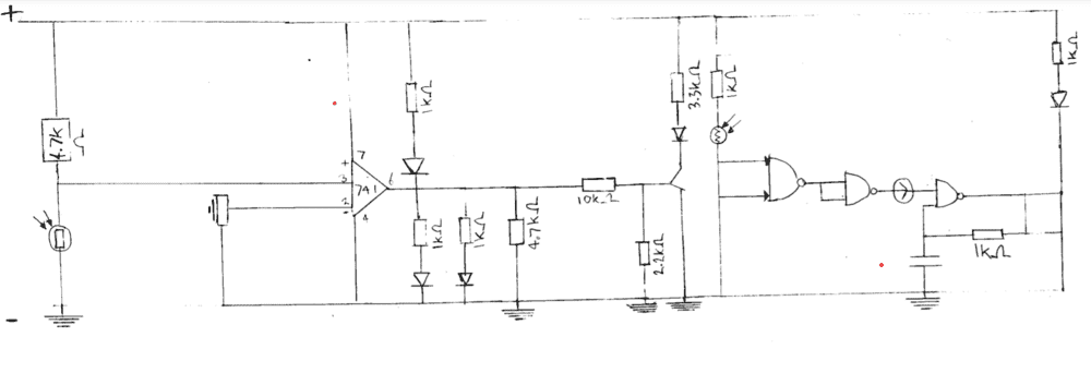 The discussion revolves around the challenges faced by a participant in drawing a schematic for a circuit they built on a breadboard. The circuit includes components such as a 741 amplifier, transistor, NAND gate, and 555 timer, and is intended for monitoring ambient light levels in a sports stadium. Participants provide feedback on the schematic and discuss circuit design principles.