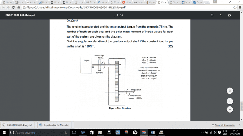 Drive line inertia and torsional effects exam question