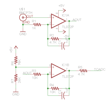 - A recommendation is made to monitor the voltage on AOUT (IC1A Pin 1) to determine where the voltage drop is occurring, whether in the first or second stage of the circuit.