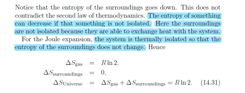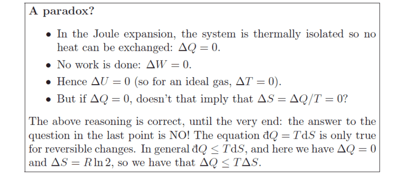 - There is a discussion about the implications of Joule expansion being an irreversible process and how it affects the calculation of entropy change.