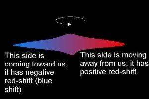 - Others explain that the rotation speed of galaxies is measured through the redshift of stars, with stars moving towards us exhibiting a blue shift and those moving away showing a red shift.