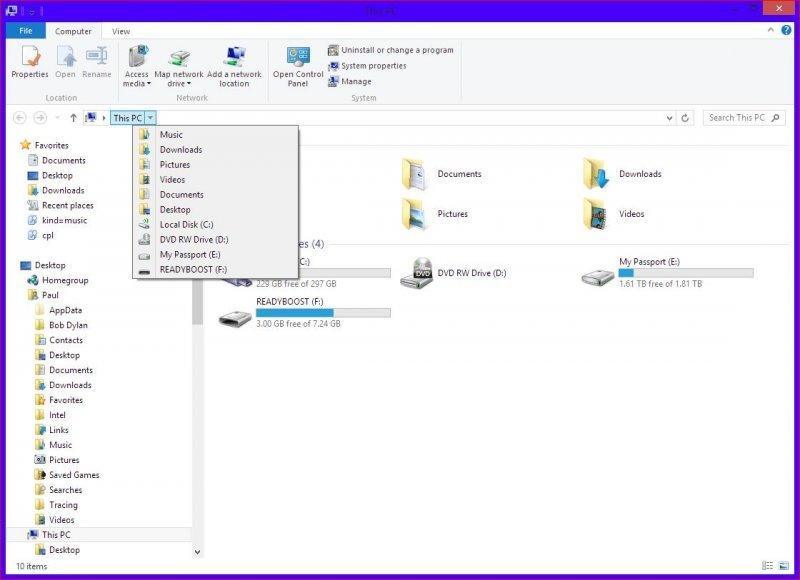 - Links to external resources are shared, suggesting that 'My PC' may be considered a special folder.