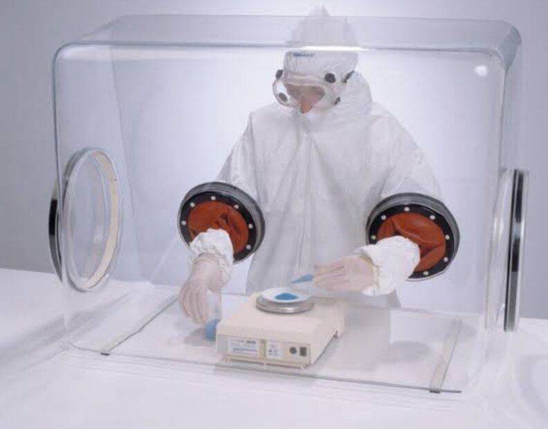 How else would you do make dusts free area? I recall this clear rectangle container with gloves that goes inside with your hands used in handling biohazard materials, what do you call it?