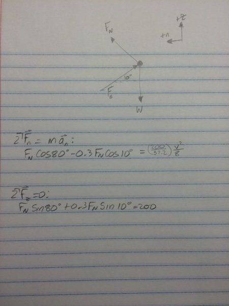 FnormalCos80-0.3FnormalCos10 = 6.21v2/8ΣFz = 0