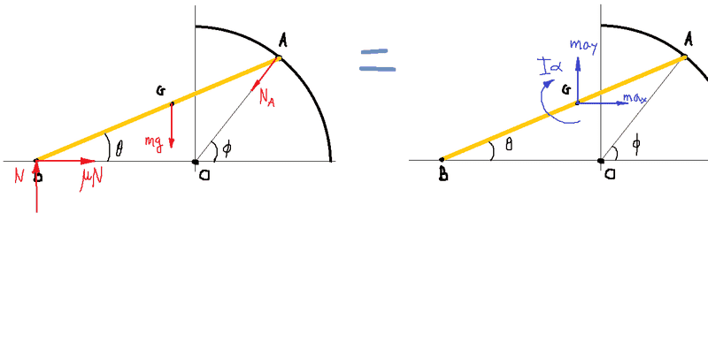 --- Normal Force at A crosses point G so no moment there. Same goes for weight.