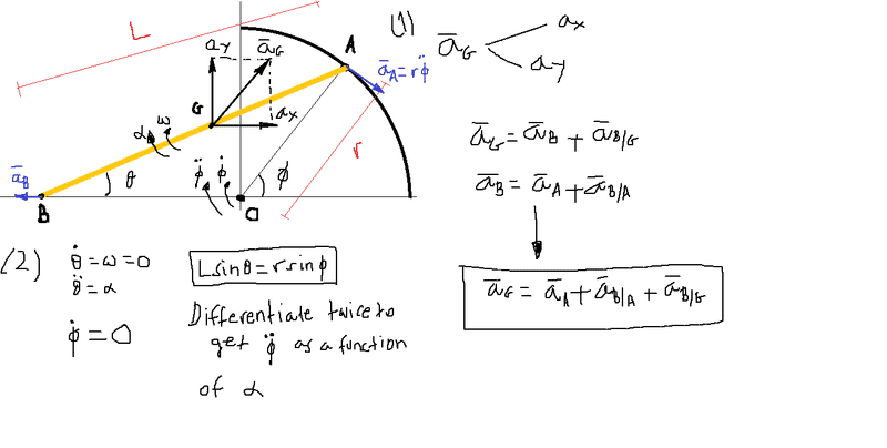 ---I'm summing the moments about point G, the center of mass for the rod, thus the the equation becomes