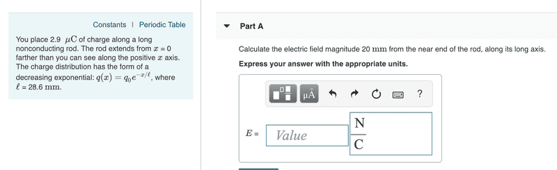 dE = k⋅qo/l ∫0∞ e-x/l / (.02 + x)dx