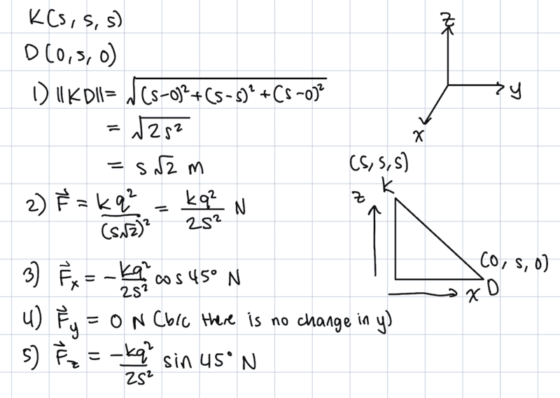 F_total = k * [(q^2 / s^2*sqrt(3))+3(q^2/s^2*sqrt(2))+3(q^2/s^2)]