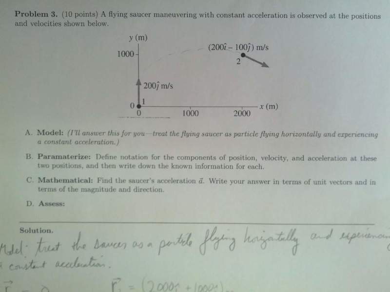 - Participants are attempting to find the saucer's acceleration in both unit vector form and in terms of magnitude and direction. Questions are raised regarding the applicability of kinematic equations to vector components versus vectors themselves.