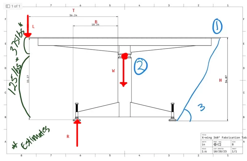 (1) I’d like to know how to calculate the force necessary to tip a cantilevered object like the table below.
