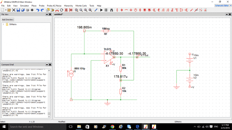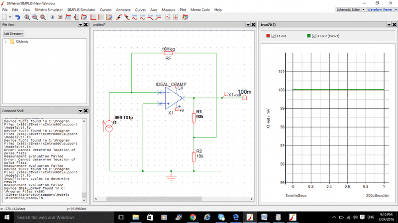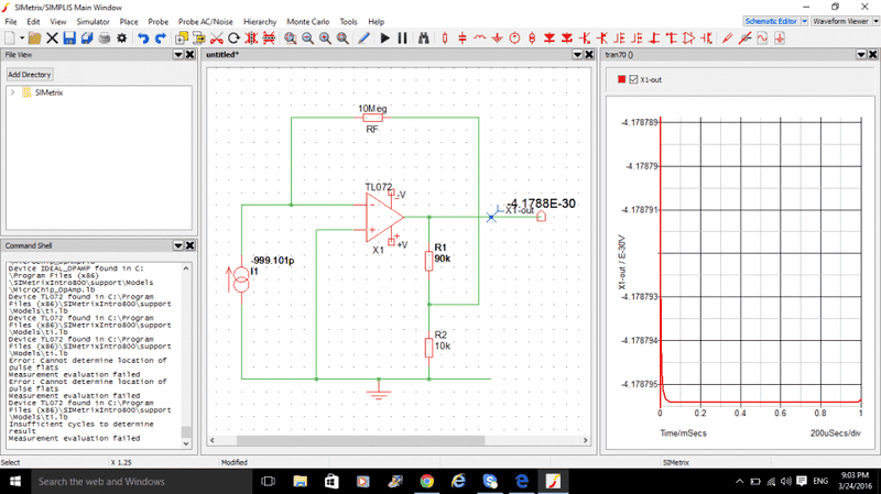 The discussion revolves around the effects of replacing an ideal op-amp with a TL 072 op-amp in a trans-impedance configuration. Participants explore the output differences observed in simulations, focusing on voltage levels and potential issues in circuit setup.