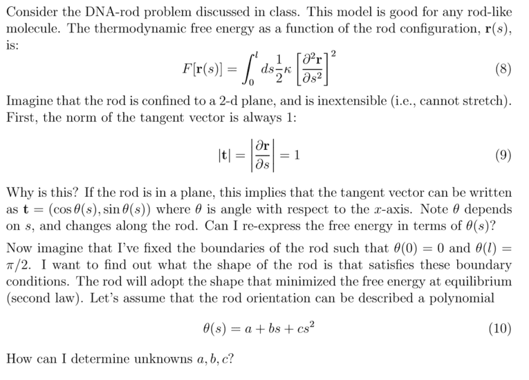 F=∫(dθ 1/2*k(dθ/ds)=F=∫(dθ 1/2*k*(b+2cs)). Then I expressed 'b' in terms of c using the initial condition θ(l)=0;