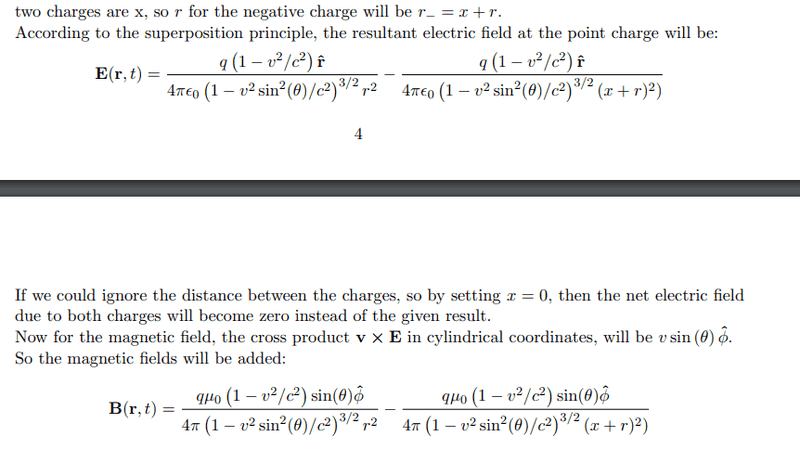 - Participants discuss the application of the superposition principle to the electric and magnetic fields of the two charges. Questions arise regarding the formal definitions of the vectors involved and the effects of changing the direction of velocity and charge on the fields.