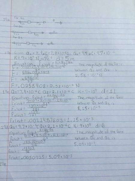 - Draw free body diagrams for the electric force acting on Q1, Q2 and Q3.