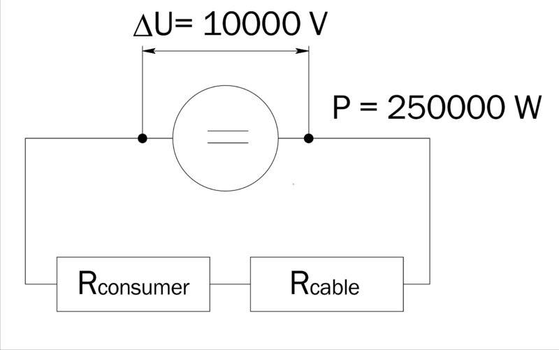 The discussion revolves around calculating the electric current in a power transmission line, specifically focusing on a cable with a resistance of 12 Ohms carrying power from a generator rated at 250 kilowatts and 10,000 volts. Participants are exploring the discrepancies in current calculations using different power formulas.
