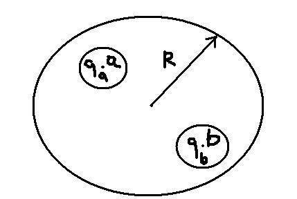 Two spherical cavities of radii a and b are hollowed out from the interior of a neutral conducting sphere of radius R. At the center of each cavity is a point charge place, callthem qa and qb