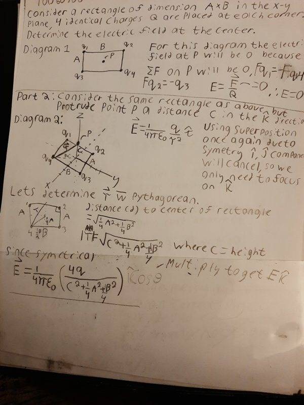 - Consider 4 identical charges q arranged in a rectangle in the x-y plane. The rectangle has dimensions a x b.