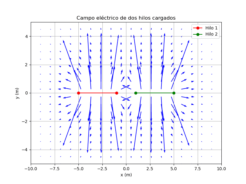 Then is similar for the other wire, but I get with opposite sign, therefore E(0,0)=0