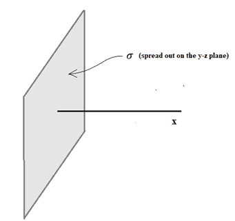 - There is an infinite charged plate in yz plane with surface charge density ##\sigma = 8*10^8 C/m^2## and negatively charged particle at coordinate (4,0,0) Find magnitude of efield at coordinate (4,4,0)