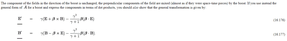 \vec \wE=\gamma(\vec {\vE} + (\vec\vW \times \vec\vB) ) -(\gamma-1)\vE_{(\hvx)}\hvx