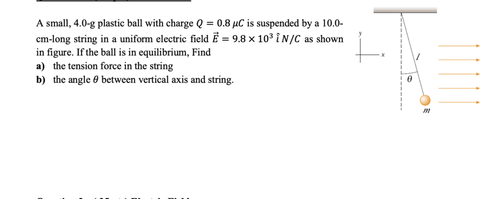cm-long string in a uniform electric field ⃗ E=9.8x10^2 in figure. If the ball is in equilibrium, Find