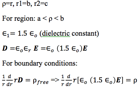 The equation I gave you was just \nabla {\bf D} = \rho_{free} for cylindrical co-ordinates.
