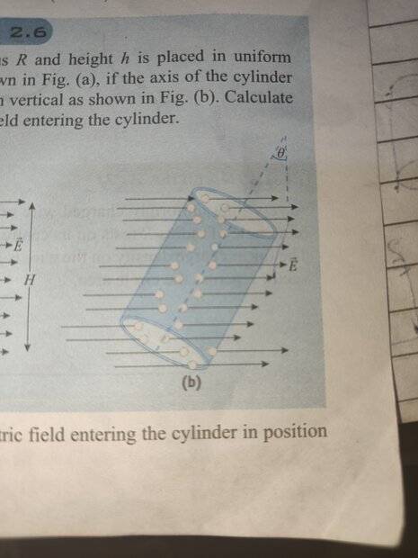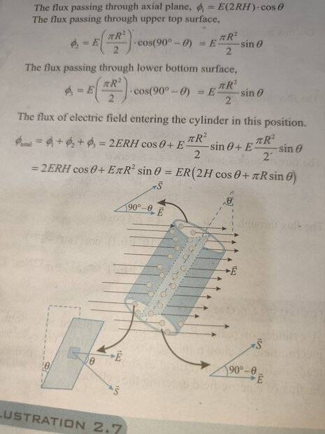 The discussion revolves around calculating electric flux through an inclined cylinder, focusing on the contributions from various areas of the cylinder and the implications of field lines intersecting these areas.