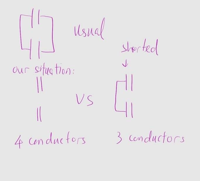 Textbooks usually connect both ends of two capacitors, of different voltages, in parallel. What would happen if we only connect one end of the capacitors? Perhaps we would have to solve for Maxwell's coefficients of potential for these two cases (to transition between both)