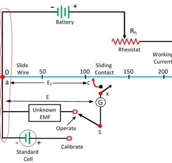 ----> what would happen if we connect batteries in parallel, or that only 1 terminal is shorted. Assume that they have the same potential difference, but that they have different electric potential. Perhaps one realization (potentiometer) (circled red part):