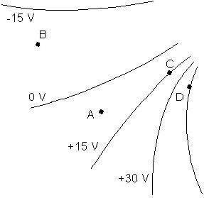 1.Rank the electric potential at the four points A, B, C, and D from greatest to least?