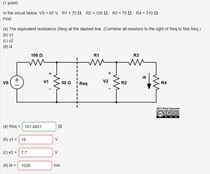 There is no consensus on the final values for current and voltage drops, as participants present slightly differing calculations and interpretations of the circuit analysis. Multiple competing views remain regarding the accuracy of the calculations and the assumptions made.