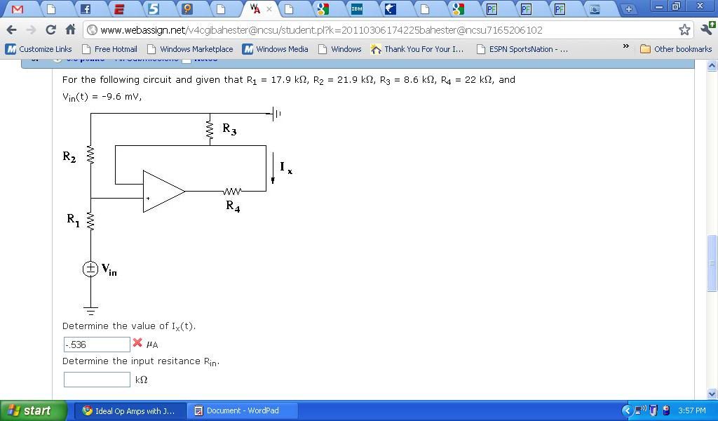The discussion focuses on solving a circuit problem involving operational amplifiers (op amps) using Kirchhoff's Current Law (KCL). The user expresses confusion about calculating the current Ix and whether it should be included in the KCL equation. The solution provided suggests first calculating the voltages in the circuit and then applying Ohm's Law (V=IR) to find the current Ix. This method clarifies the relationship between voltage and current in the context of the op amp circuit.