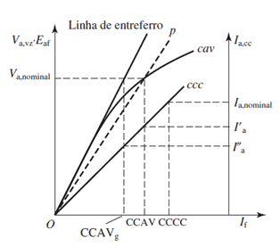In section 5.3.2 of the book it is said: "For operation at or near rated terminal voltage, it is common to assume that the machine is equivalent to an unsaturated one with a linear magnetizing characteristic which starts at the origin and which passes through the rated-voltage point on the open-circuit characteristic ".