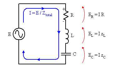 The ac circuit has 3 components in series: a Capacitor C=120μF, an Inductor L=100mH, and a resistor R=7Ω.