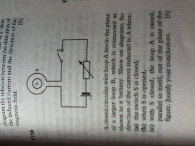 (See image) a closed circular wire A lies in the plane of the wire B in the circuit. Deduce the direction. Of the induced current in A when