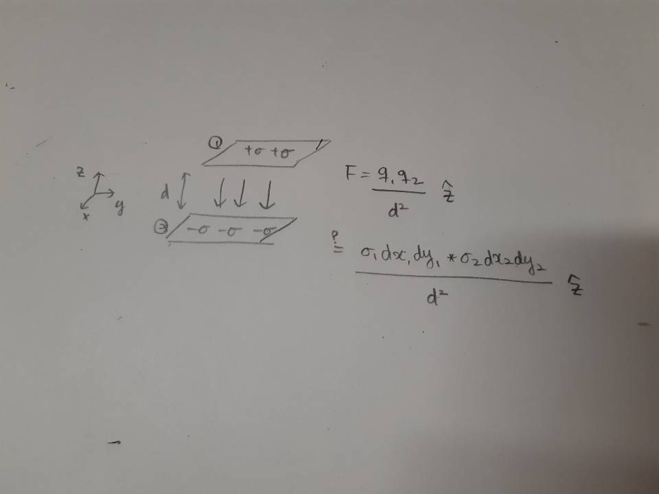 Hello, I need to find the force between the two metal plates, one is charged positively, and another is charged negatively.