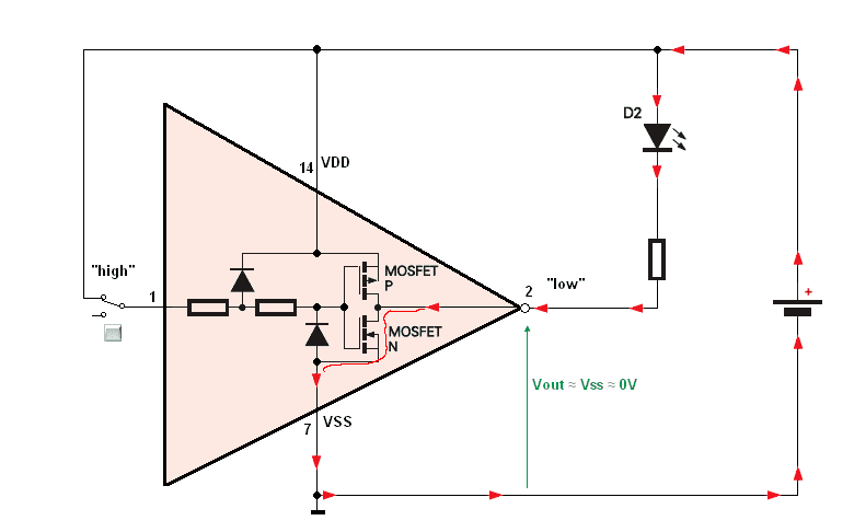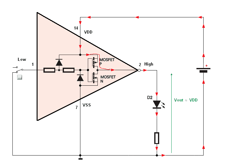Can current flow both ways through a NOT gate, or is the diagram I saw, much like the picture I drew here, just drawn the wrong way around?