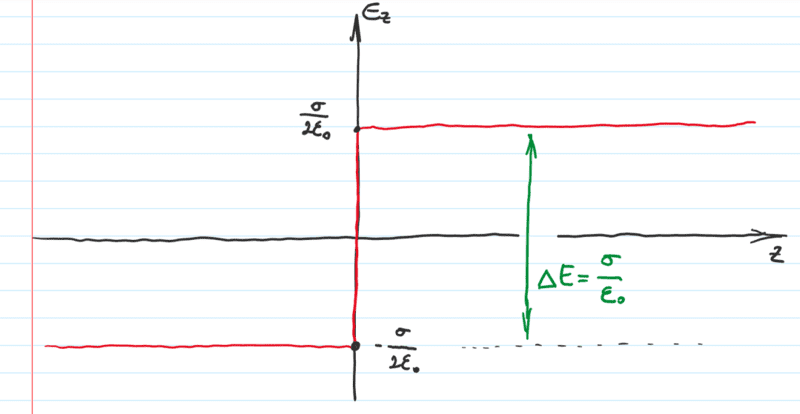 $$E_{above}-E_{below}=\frac{\sigma}{\epsilon_0}$$
