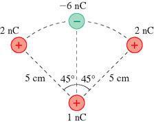 What is the force F_vec on the 1 nC charge at the bottom? View Figure