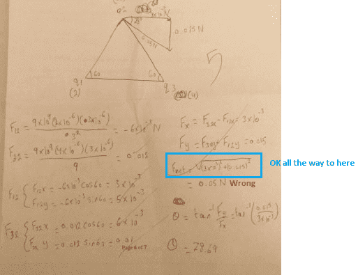 - Participants explore the impact of a misplaced parenthesis on the interpretation of the solution. There are discussions about vector addition methods and the potential errors in calculating forces. Some participants suggest checking the reasoning behind vector addition and the implications of using different values for force magnitudes.